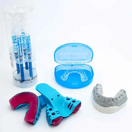 Blanchir vos dents tout comme chez le dentiste avec des gouttières de blanchiment sur mesure et le gel blanchissant Opalescence.